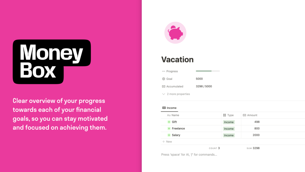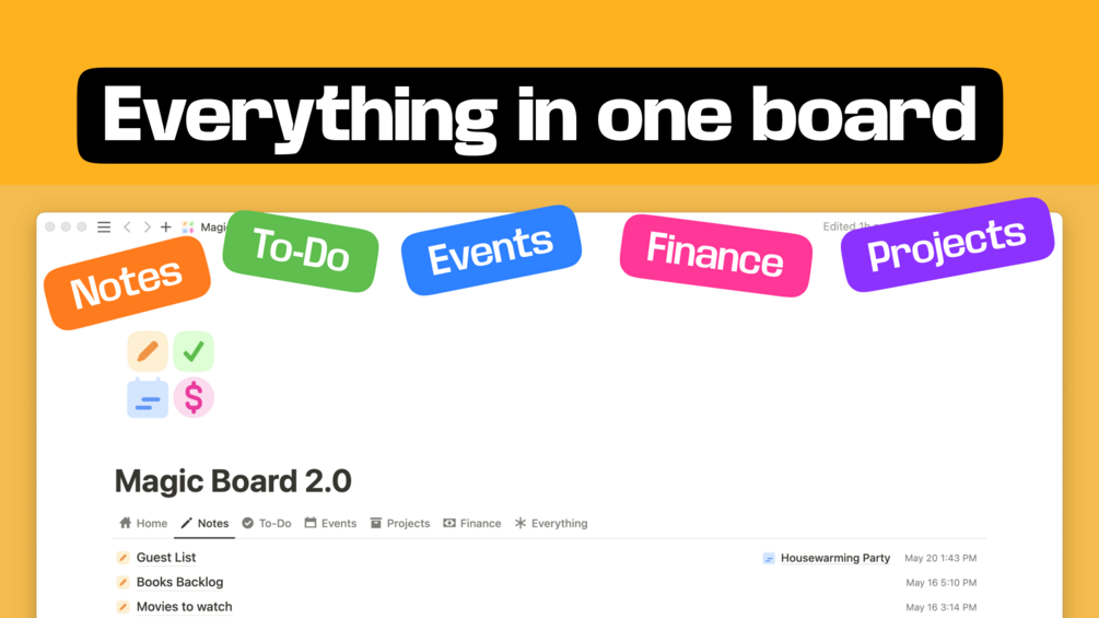 Streamline your productivity with Notion's all-in-one table with the powerful update. Track tasks, plan events, keep notes, and manage expenses with ease. Quickly access your to-do list, monitor spending, and set clear goals.
