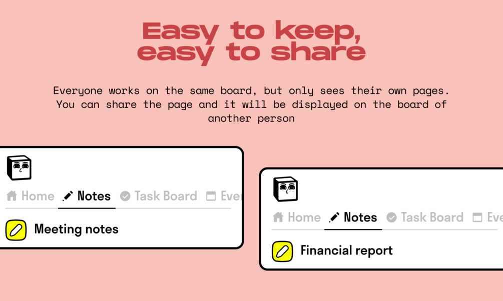 Team Page's private pages feature ensures that everyone works on the same board, but only sees their own pages, giving you peace of mind.